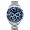 Pánské náramkové hodinky Napájení z baterie Průměr pouzdra 45,0 mm Pouzdro ve tvaru kruhu Kovové pouzdro Stříbrná barva pouzdra Kovový tah Stříbrná barva tahu Ručičkový ciferník TMAVO MODRÁ barva ciferníku Ciferník s dvanácti indexy Materiál skla - minerální sklo Odolné proti vodě při běžném nošení