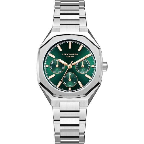 Dámské náramkové hodinky Napájení z baterie Průměr pouzdra 34,0 mm Pouzdro ve tvaru čtverce Kovové pouzdro Stříbrná barva pouzdra Kovový tah Stříbrná barva tahu Ručičkový ciferník Zelená barva ciferníku Ciferník s dvanácti indexy Materiál skla - minerální sklo Odolné proti vodě při běžném nošení