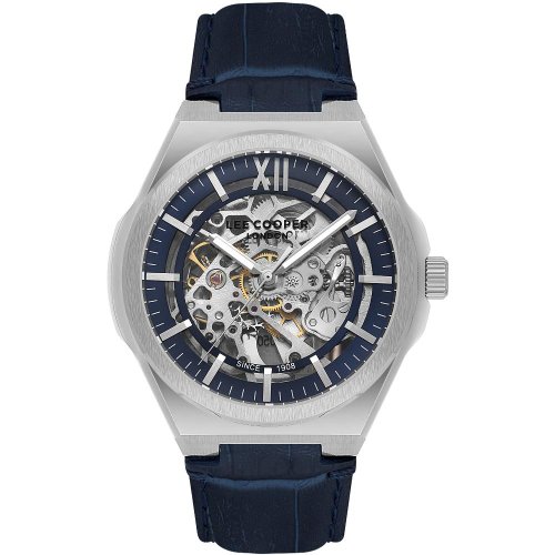 Pánské náramkové hodinky Automatický pohon Průměr pouzdra 43,0 mm Pouzdro ve tvaru kruhu Kovové pouzdro Stříbrná barva pouzdra Kožený tah TMAVO MODRÁ barva tahu Ručičkový ciferník Ciferník s dvanácti indexy Materiál skla - minerální sklo Odolné proti vodě při běžném nošení