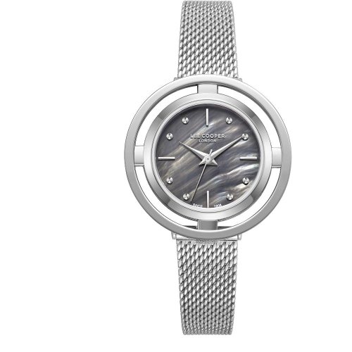Dámské náramkové hodinky Napájení z baterie Pouzdro ve tvaru kruhu Kovové pouzdro Stříbrná barva pouzdra Kovový tah Stříbrná barva tahu Ručičkový ciferník Černá barva ciferníku Materiál skla - minerální sklo Odolné proti vodě při běžném nošení