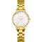 Dámské náramkové hodinky Napájení z baterie Pouzdro ve tvaru kruhu Kovové pouzdro Zlatavá barva pouzdra Kovový tah Zlatavá barva tahu Ručičkový ciferník Materiál skla - minerální sklo Odolné proti vodě při běžném nošení