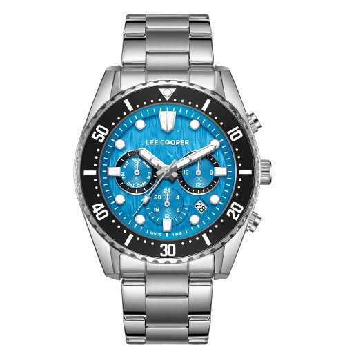 Pánské náramkové hodinky Napájení z baterie Průměr pouzdra 43,0 mm Pouzdro ve tvaru kruhu Kovové pouzdro Stříbrná barva pouzdra Kovový tah Stříbrná barva tahu Ručičkový ciferník Modrá barva ciferníku Ciferník s dvanácti indexy Materiál skla - minerální sklo Odolné proti vodě při běžném nošení