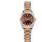 Dámské náramkové hodinky Napájení z baterie Průměr pouzdra 28,0 mm Pouzdro ve tvaru kruhu Kovové pouzdro Růžové zlato barva pouzdra Kovový tah Růžové zlato barva tahu Ručičkový ciferník Hnědá barva ciferníku Ciferník s dvanácti indexy Materiál skla - minerální sklo Odolné proti vodě při běžném nošení