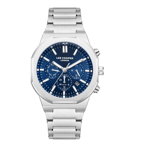 Pánské náramkové hodinky Napájení z baterie Průměr pouzdra 41,0 mm Pouzdro ve tvaru kruhu Kovové pouzdro Stříbrná barva pouzdra Kovový tah Stříbrná barva tahu Ručičkový ciferník Modrá barva ciferníku Ciferník s dvanácti indexy Materiál skla - minerální sklo Odolné proti vodě při běžném nošení Datum