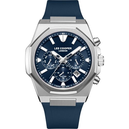 Pánské náramkové hodinky Napájení z baterie Průměr pouzdra 44,0 mm Pouzdro ve tvaru osmihranu Kovové pouzdro Stříbrná barva pouzdra TMAVO MODRÁ barva tahu Ručičkový ciferník TMAVO MODRÁ barva ciferníku Ciferník s dvanácti indexy Materiál skla - minerální sklo Odolné proti vodě při běžném nošení
