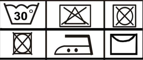 prát na 30 °C bežné praní nebělit nesušit v sušičce žehlení při maximální teplotě žehlící plochy 110 °C opatrně při žehlení párou nečistit chemicky