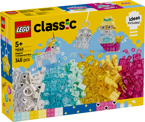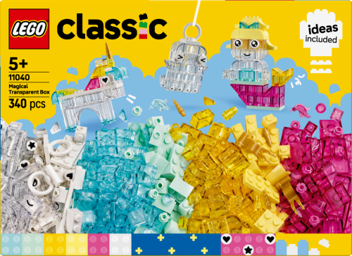 Kouzelná průhledná krabička z kostek LEGO® se skvěle hodí pro kreativní děti a je plná zábavných a fantastických modelů pro holky a kluky od 5 let Průsvitné kostky, dílky s očima a ústy a dílky na zavěšení dodají dětským výtvorům jiskru a malí stavitelé si s nimi užijí spoustu zábavy Děti si postaví srdce, ducha, mořskou pannu, hvězdu, jednorožce, vesmírnou loď, mrak, kometu, ptáka, narvala, zmrzlinu a květiny nebo vlastní nápadité výtvory 4 dílky na zavěšení dětem umožní vyzdobit si pokojíček zábavnými hračkami, fantastickými stvořeními a spoustou dalších výtvorů
