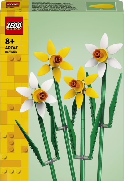 • Kreativní dárková stavebnice – Milovníci květin od 8 let si postaví Narcisy z kostek LEGO® a model si hrdě vystaví• Barvy jara – Narcisy vypadají jako skutečné květiny a mají jemné odstíny žluté a bílé a nechybí ani zelené stonky s nastavitelnými listy• Vyzkoušejte si aranžování květin – Narcisy lze kombinovat s dalšími stavebnicemi květin (prodávají se samostatně) a vytvořit originální kytici LEGO®• Dárek k jakékoli příležitosti – Sestavitelné květiny jsou skvělý dárek pro děti nebo pro dospělé milovníky květin k Valentýnu nebo ke Dni matek• Rozměry – Stavebnice se skládá z 216 dílků a každý narcis měří přes 30 cm na výšku