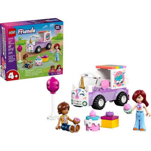 Tato zábavná stavebnice pro děti od 4 let s motivem jednorožce Obsahuje 2 minipanenky a doplňky pro stimulaci dětské fantazie, pomáhá rozvíjet stavitelské schopnosti Inspirujte děti, aby při hraní s touto stavebnicí jednorožčího autíčka s narozeninovým dortem vyprávěly příběhy Tato rozkošná stavebnice LEGO obsahuje minipanenku Paisley a Lea a děti si s ní užijí hodiny stavění, hraní a vyprávění si vlastních zábavných příběhů Stavebnice LEGO® Friends Jednorožčí donáškové auto s dortem otevírá dveře do světa vzdělávacích aktivit pro malé děti Jako je vyprávění příběhů s narozeninovým dárkem, hračkou v podobě dortu, balónkem a donutem