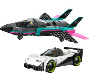 Užijte si s dětmi hodiny zábavy při superrychlém závodění se stavebnicí LEGO® City Tryskáč vs. auto pro děti od 6 let V krabici najdete vše, co děti potřebují k sestavení superauta a tryskáče, minifigurku pilota a řidiče pro napínavá závodní dobrodružství Děti můžou spustit přídavné spalování tryskáče posunutím páčky a otevřít kokpit superauta, aby nahlédly do jeho interiéru Proveďte děti na jejich příštím stavitelském dobrodružství intuitivní aplikací LEGO® Builder s návodem, který jim umožní přibližovat a otáčet modely ve 3D a sledovat postup stavění