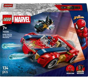 LEGO® stavebnice 76336 z řady Marvel představuje vzrušující souboj mezi Spider-Manem a venomizovaným Wolverinem, která je určena dětem od 7 let. Tato sada obsahuje 134 dílků, z nichž je možné postavit Spider-Manovo futuristické vozidlo, které je navrženo v kombinaci červené, modré a zlaté barvy s výrazným pavoučím motivem na kapotě. Vozidlo má aerodynamický tvar s propracovanými detaily, jako je průhledné čelní sklo a robustní kola, což dodává celému modelu dynamický a akční vzhled.