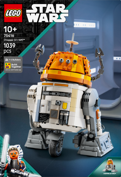 Stavebnice LEGO® Star Wars™ pro děti – Vytvořte si hravou výstavku se sestavitelnou figurkou oblíbeného astro-droida Choppera (C1-10P) z dobrodružného seriálu Star Wars: Ahsoka™ Autentické detaily – Otáčejte Chopperovou hlavou a páčkou na dálkuaktivujte jeho ikonické pohyby hlavy, pak upravte jeho anténu, nasměrujte jeho ruce a nohy a vyložte nástroj z jeho hrudníku Různé možnosti vystavení – Paže a kolo ve středu Choppera jsou odnímatelné, takže model lze upravit tak, aby vypadal, že má ruce a kolo zasunuté dovnitř těla Stavebnice na výstavku – Součástí hlavní sestavitelné figurky je informační štítek na stojanu s prostorem pro figurku LEGO® droida Choppera (C1-10P) ve standardní velikosti, která je součástí balení Dárek LEGO® Star Wars™ pro celou rodinu – Tato stavebnice představuje skvělý dárek k narozeninám nebo Vánocům pro kluky, holky a fanoušky fantasy dobrodružného seriálu Star Wars: Ahsoka™ od 10 let Stavějte společně s přáteli a rodinou – Aplikace LEGO® Builder nabízí zábavný stavitelský zážitek, při kterém si užijete společné stavění Stavebnice LEGO® Star Wars™ pro všechny věkové kategorie – Sběratelské stavebnice LEGO Star Wars (prodávají se samostatně) umožňují dětem a dospělým fanouškům přehrávat si slavné scény, vymýšlet nové příběhy a vystavovat si sestavitelné modely Rozměry – Tato stavebnice LEGO® Star Wars™ se skládá z 1039 dílků a figurka droida Choppera měří přes 22 cm na výšku