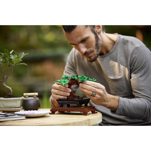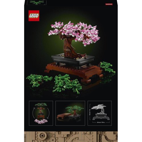 Umění pěstování bonsajů uchvacuje fantazii milovníků stromů po celá staletí. Nyní můžete toto starodávné umění oslavit pomocí LEGO® stavebnice s modelem bonsaje. Vychutnejte si pocit klidu, který zažijete při tvarování bonsaje pomocí zelených listů nebo růžových třešňových květů. Když zatoužíte po změně, jednoduše vyměňte barevné koruny a dosáhněte zcela nového vzhledu. Prohlédněte si růžové květy pořádně zblízka – vidíte malé žabky, které tvoří jednotlivé květy?