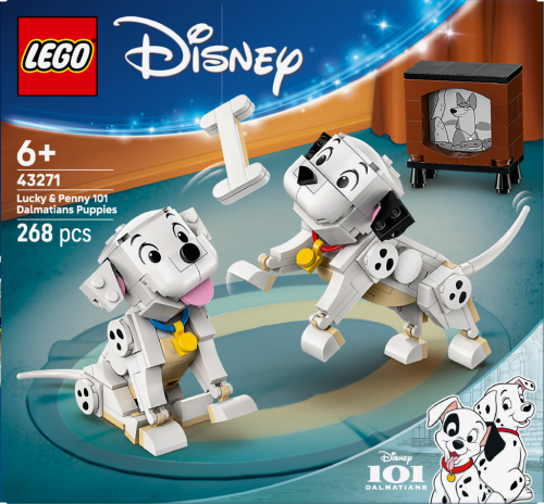 Potěšte děti nebo milovníky zvířat od 6 let stavebnicí LEGO® ǀ Disney (43271) Štěňátka Štístko a Penny z filmu 101 dalmatinů. Tato stavebnice je plná herních možností a obsahuje 2 štěňata dalmatinů z klasické Disney pohádky 101 dalmatinů, kost z kostek a malou televizi. Postavičky štěňátek LEGO ǀ Disney mají pohyblivé hlavy, nohy a ocasy a lze je napolohovat různými způsoby. Tato roztomilá stavebnice představuje skvělý dárek pro holky, kluky a fanoušky filmů od studia Disney. Lze ji kombinovat s dalšími stavebnicemi LEGO ǀ Disney z této řady (prodávají se samostatně) a skvěle se hodí i na hraní na cestách. Dospělí fanoušci Disney, kteří mají rádi roztomilé pejsky, se navíc můžou připojit k dětem a postavit si náročnější doplňkovou stavebnici (Štěňátko z filmu 101 dalmatinů pro dospělé, prodává se samostatně). Děti se můžou vydat na nenáročné a intuitivní stavitelské dobrodružství s aplikací LEGO Builder. V ní si lze přibližovat a otáčet modely ve 3D, ukládat stavebnice a sledovat postup. Stavebnice obsahuje 268 dílků.