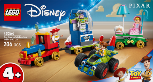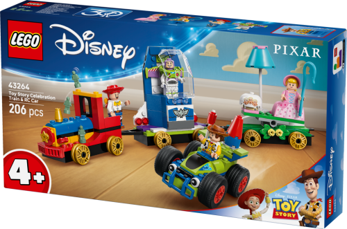 Děti od 4 let, které milují vozidla a vlaky, najdou ve stavebnici LEGO® | Disney a Pixar (43264) Slavnostní vláček a Autíčko z Příběhu hraček všechno, co mají rády! Naučí se stavět při oslavě 30. výročí filmového hitu Příběh hraček od studií Disney a Pixar s lokomotivou inspirovanou westerny, 2 alegorickými vagóny a Autíčkem. Na vozech najdete houpačku a vesmírnou loď. Stavebnice obsahuje 4 postavy LEGO | Disney a Pixar: Woodyho, Jessie, Pastýřku a Buzze Rakeťáka. Tato stavebnice poslouží jako skvělý dárek pro děti: Dodá jim sebevědomí a umožní vám s nimi sdílet radost ze stavění. 3 začátečnické kostky dětem pomůžou stavět bez váhání. V každém pytlíku s kostkami najdou jednu postavičku, takže se můžou hned pustit do hraní na postavy! Stavebnici navíc lze kombinovat s dalšími z řady LEGO | Disney (prodávají se samostatně). Kromě jednoduchých obrázkových návodů pro děti, které se teprve učí číst, najdete v aplikaci LEGO Builder snadné a intuitivní stavitelské dobrodružství. Děti můžou přibližovat, otáčet modely ve 3D a mnoho dalšího. Stavebnice obsahuje 206 dílků.