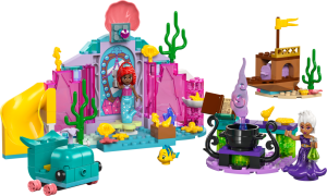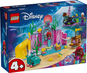 "Děti od 4 let se mohou těšit na dobrodružství plná objevování a hraní při stavění sady LEGO® ǀ Disney Princess (43254) Ariel a její křišťálová jeskyně. Tato stavebnice s mořskou pannou pomáhá dětem rozvíjet schopnost řešení problémů kreativním hraním. Uvnitř najdete jeskyni s otočnou plošinou a skluzavkou, velrybí vozidlo, vrak lodi s truhlou s pokladem a kotel. Součástí jsou také minipanenky LEGO ǀ Disney Uršuly a Ariel a figurka LEGO ǀ Disney ryby Šupinky.