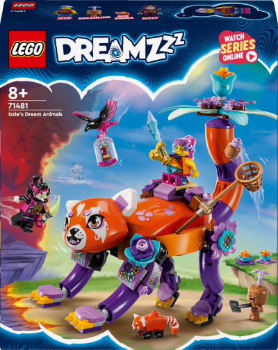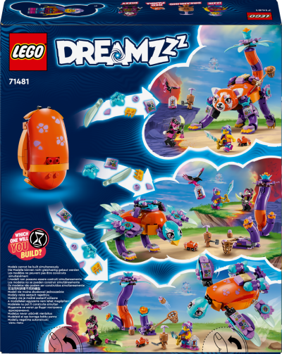 Popusťte uzdu fantazii se stavebnicí LEGO® DREAMZzz™ (71481) Izzie a její snová zvířátka pro děti od 8 let. Tato stavebnice se zvířaty je inspirovaná napínavým televizním seriálem a holky a kluci v ní objeví kouzelné vajíčko, ve kterém se skrývajípřestavitelné figurky snových stvoření. Krkavec Nikdyčarodějnice ukradl Izzieinu vzpomínku! Kreativní děti ji mohou získat zpět s pomocí této fantasy stavebnice, která malým snílkům přináší hned 3 úžasné možnosti stavění: Mohou vejce přestavět na kouze lnou pandu červenou a poté ji přeskládat na fantastického ptáčka nebo na mořskou želvu. Panda červená může krkavce pronásledovat na souši, fantastický pták může krkavce sledovat na obloze a bájná želva může krkavce nahánět pod vodou. Tuto stavebnici LEGO DREAMZzz přivádějí k životu 2 minifigurky: Hrdinka Izzie a její zlá dvojnice Dizzy. Součástí je také figurka stvoření ze Světa snů a mini figurka pandy červené. Nechybí návod na stavění vedený příběhem, který dětem umožní ponořit se do akce a užít si neomezené kreativní hraní. Rozměry – Stavebnice se skládá z 328 dílků a model pandy červené měří přes 19 cm na výšku