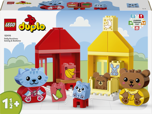 • Rozvoj sociálních a emočních dovedností – Stavebnice LEGO® DUPLO® Moje první každodenní aktivity: Jídlo a spánek dětem od 18 měsíců pomáhá porozumět významu každodenních činností• Přestavovací hračka pro nejmenší – Hledáte tu nejlepší hračku, která malým dětem pomůže porozumět pocitům? Tato poutavá stavebnice se 4 figurkami zvířecích rodinek je perfektní volba• Vzdělávací hračka pro interaktivní hraní – Tato stavebnice batolatům a rodičům přináší možnost přehrávat si každodenní činnosti, povídat si o emocích a stavět a přestavovat barevné domečky• Zvířátka s osobností – Figurkám medvíděte a koťátka lze vyměnit výraz za veselý nebo smutný a i ty nejmenší děti, které se teprve učí mluvit, tak snadno vyjádří své pocity• Nápad na dárek promalé milovníky zvířat – Stavebnice představuje zábavný dárek pro každou příležitost pro malé děti a pomůže jim porozumět významu každodenních aktivit• Vysoce kvalitní výrobek – Kostky a dílky z této stavebnice LEGO® DUPLO® se zvířátky pouštíme na zem, drtíme, kroutíme, zahříváme a analyzujeme, abychom zajistili, že splňují přísné normy týkající se bezpečnosti dětí• Učení hrou – Vzdělávací hračky LEGO® DUPLO® pro nejmenší byly odborníky navrženy tak, aby malým dětem pomohly s rozvojem sociálních, motorických a kreativních dovedností a empatie• Rozměry – Model se skládá z 28 dílků a měří přes 17 cm na výšku, 53 cm na šířku a 13 cm do hloubky