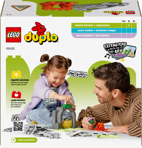 Kostky a dílky ztéto stavebnice LEGO® DUPLO jsou testované, aby splňovaly přísné normy týkající se bezpečnosti dětí Zkombinujte tuto stavebnici s dalšími z řady LEGO® DUPLO Město (10427 a 10428) a vydejte se s dětmi na ještě větší vzdělávací dobrodružství Interaktivní stavebnice LEGO® DUPLO s vláčky pomáhají rozvíjet tvůrčí schopnost řešení problémů, trpělivost, soustředění a vytrvalost Stavebnice se skládá z 20 dílků a model tunelu měří přes 20 cm na výšku, 16 cm na šířku a 15 cm do hloubky