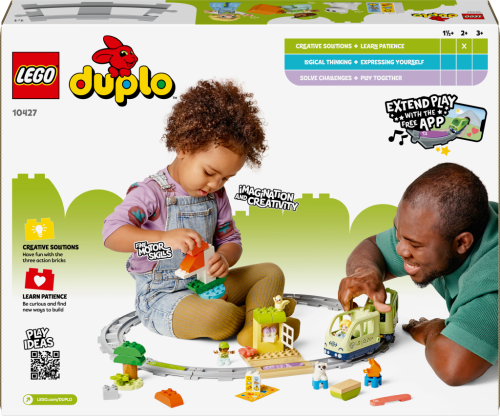 Udělejte radostmalému fanouškovi vlaků touto stavebnicí LEGO® DUPLO se spoustou funkcí Bezplatná aplikace LEGO® DUPLO Interactive Trains dětem přináší inspiraci a umožňuje jim nahrávat vlastní zvuky a řídit vlak pomocí přenosného elektronického zařízení Interaktivní stavebnice LEGO® DUPLO s vláčky jsou navrženy experty tak, aby pomáhaly rozvíjet tvůrčí schopnost řešení problémů, trpělivost, soustředění a vytrvalost Stavebnice se skládá z 57 dílků a součástí jsou koleje LEGO® DUPLO, které po sestavení do tvaru smyčky měří přes 13 cm na výšku, 71 cm na šířku a 57 cm do hloubky