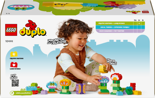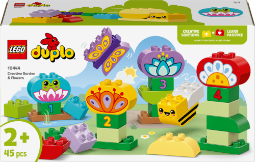 Pomozte své ratolesti rozvíjet kreativitu a jemné motorické dovednosti se stavebnicí LEGO® DUPLO® Město (10444) Kreativní zahrada a květiny. Tato stavebnice obsahuje 45 kostek na sestavení barevných květin, roztomilých zvířátek a hmyzu LEGO DUPLO a inspiruje kreativní děti k sestavení neustále se měnící krásy z kostek. Tato vzdělávací hračka podněcuje představivost malých dětí a umožní jim postavit si vlastní verzi světa, který každý den vidí kolem sebe. Děti ze 45 kostek poskládají zahradu a naučí se rozpoznávat čísla, procvičí rozpoznávání barev a začnou zdokonalovat svou řeč a jemné motorické schopnosti. Rozvinou také svou vytrvalost při skládání kostek na sebe, aby vytvořily zvířátka a květiny. Hledáte ten nejlepší dárek pro svou ratolest? Tato kreativní hračka obsahuje spoustu kostek, se kterými si malé děti poskládají zahradu podle svých představ, umístí figurky motýla, včely a žáby, kamkoli chtějí, a navíc zdokonalí své dovednosti!
