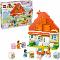 Sestavitelný domeček inspirovaný televizním seriálem Bluey – Tento barevný model rodinného domu Heelerových se pyšní pokoji s otevíracími okny, zábavným kolečkem s otočnou ručičkou, stolem a 3 židlemi