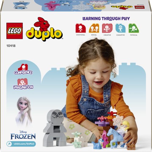 • Fantastická hračka pro malé fanoušky filmu Ledové království 2 z dílny studia Disney – Dopřejte malým dětem dobrodružství se stavebnicí LEGO® DUPLO® ǀ Disney Elsa a Bruni v začarovaném lese z filmu Ledové království 2 • Stavebnice podle Disneyhofilmu Ledové království 2 pro děti od 2 let – Součástí je sestavitelná scéna lesa, minipanenka Elsy a figurka mloka Bruniho, vodního koně Nokka a zemního obra • Stavebnice LEGO® DUPLO® pro menší děti – Malí stavitelé prohloubí svou schopnost sebevyjádř ení při hře na Elsu, Bruniho nebo vodního koně Nokka, který uhání lesem, aby se skamarádili se zemním obrem • Doplňky inspirované filmem – Součástí je sněžný krystal, Bruniho růžový plamen a sestavitelná zasněžená scéna pro neomezené kreativní hraní • Tip na narozeninový dárek pro malé děti – Darujte fanouškům filmu Ledové království 2 od 2 let tuto fantasy stavebnici jen tak nebo ke zvláštní příležitosti • Bezpečný herní zážitek – Dílky a kostky LEGO® DUPLO® ǀ Disney jsou testovány na maximum a každá stavebnice splňuje nejpřísnější globální standardy bezpečnosti a kvality • Učení hrou – Stavebnice LEGO® DUPLO® zaujmou malé děti a pomohou jim rozvíjet jemné motorické dovednosti a sebevyjádření. Rodiče mohou se svými ratolestmi sdílet jejich důležité vývojové milníky • Rozměry – Stavebnice se skládá z 31 dílků a součástí je model zemního obra, který měří přes 15 cm na výšku