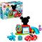 Tato sestavitelná hračka pomáhá malým dětem učit se třídit prostřednictvím tvořivého hraní. Můžou se střídat s dospěláky v roztáčení kolečka a pak využívat své schopnosti třídění ke spárování obrázků s barevnými doplňky. Tato stavebnice s vozidlem dětem přináší úkoly, jako je oprava sestavitelného autíčka pomocí klíče nebo jeho umývání pomocí kbelíku a kartáče. Malé prstíčky si procvičí jemnou motoriku při zkoumání zajímavých prvků, jako je otevírací okno, sestavitelná skluzavka a otáčející se kola auta. Tato dětská stavebnice LEGO® DUPLO® inspiruje batolata k tomu, aby zapojila představivost a schopnosti sebevyjádření k vymýšlení vlastních kreativních dobrodružství s Mickeyho klubíku.