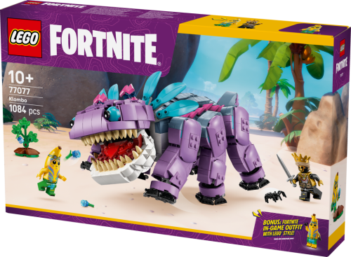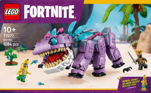 Fanoušci a gameři od 10 let si se stavebnicí LEGO® Fortnite® (77077) Klombo postaví kultovní postavu LEGO® Fortnite. Klombo je velké stvoření z videohry LEGO Fortnite a díky této stavebnici si ho holky a kluci můžou postavit z kostek LEGO. Děti si užijí spoustu zábavy při stavění modelu podle videohry Fortnite a objeví všechny jeho skvělé detaily, včetně pohyblivých nohou, otevírající tlamy a otáčejícího se ocasu. Součástí stavebnice je také malý keř Klomberry s odnímatelným ovocem Klomberries. Děti si tak můžou hrát na to, že Klomba vyruší, aby se naštval, a pak ho nakrmí ovocem, aby si Klomba udobřily. Stavebnice obsahuje také minifigurky Island Adventure Peelyho a Ora, které lze připevnit na záda Klomba a užít si s nimi tvořivé hraní na postavy. Tato úžasná stavebnice zvířátka poslouží jako krásný dárek pro gamery všech věkových kategorií a obsahuje skvělý digitální bonusový předmět. Hráči naskenují QR kód v návodu ke stavění a odemknou si outfit pro Island Adventure Peelyho ve videohře LEGO Fortnite. Stavebnice obsahuje 1084 dílků.
