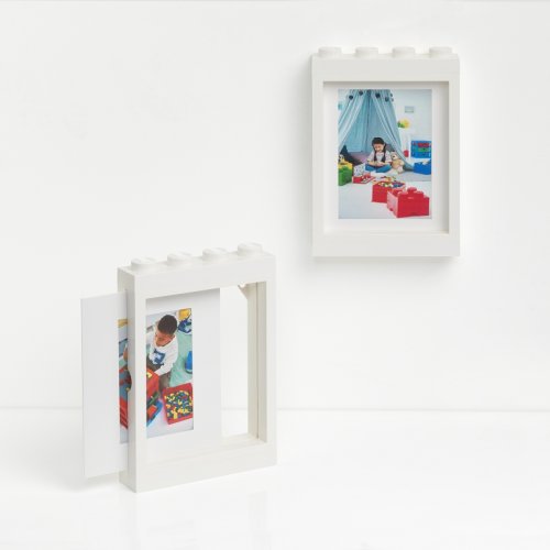 Vystavte své oblíbené fotografie stylově v novém fotorámečku LEGO. Rámeček lze pověsit na zeď, nebo volně položit na noční stolek či poličku. Kartonová vsuvka je přizpůsobena na 2 velikosti fotografií: 10x15 cm anebo 12x17 cm. Fotorámečky jsou kompatibilní se skříňkami na minifigurky a lze je skládat na sebe jako klasické LEGO.