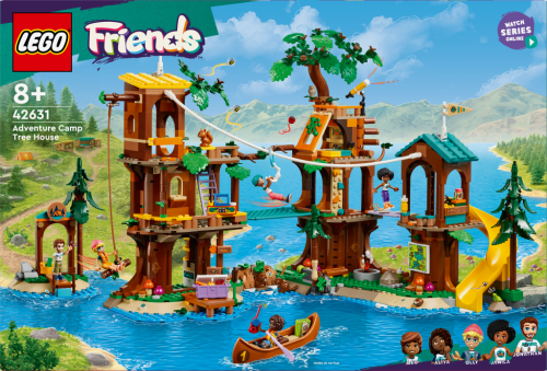 „Stavebnice LEGO® Friends (42631) Dobrodružný tábor – dům na stromě je plná příběhů pro holky i kluky od 8 let. Děti povypráví příběh kamarádů Lea, Aliyi, Jamily a Ollyho, kteří spolu s vedoucím tábora Jonathanem zkouší úžasné nové aktivity. Stavebnice je plná zábavných prvků pro kreativní hraní a obsahuje 5 minipanenek, doplňky a spoustu figurek zvířat včetně 2 bobrů, kteří staví hráz. Pošlete postavičky dolů lanovkou nebo jim pomozte překonat překážkovou dráhu s mostem z polen, lezeckou stěnu a padací dveře. Vyzkoušejte si i další aktivity, jako je plavba na kanoi, nebo se vydejte na ostrov, na který se dá dostat jen lodí nebo lanovkou. Váš malý průzkumník se může s postavičkami vydat na lov brouků – povede se jim najít všechny skryté živočichy a zasloužit si odznak? Podívejte na tu roztomilou veverku, která si v korunách stromů postavila vlastní úkryt s pelíškem! Tato stavebnice představuje skvělý dárek pro holky i kluky, kteří milují domy na stromě a stavebnice.“