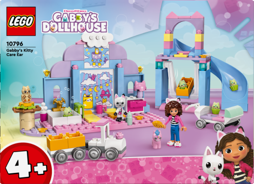 „Stavebnice Gábi a kočičí jesličky (10796) je hračka podporující rozvoj dovedností pro fanoušky seriálu Gábinin kouzelný domek z dílny studia DreamWorks Animation od 4 let. Tato hračka pro kluky i holky představuje skvělý způsob, jak děti mohou při zábavné hře na postavy prohloubit sebejistotu, soustředěnost a schopnost řešit problémy! Hledáte dárek pro malé děti, které se rády starají o zvířátka? Tato zábavná stavebnice domečku pro panenky je to pravé! Součástí je minipanenka Gábi a figurka Pandy Ťapky, Kočkorožčete, Sovátka a 4 Malých Košíčků. Nechybí houpačka, skluzavka, hračka vláčku a 4místný kočárek pro Košíčky. Ve stavebnici také najdete vanu s doplňky včetně šamponu a kartáče, lahvičku, hrneček, pohádkovou knížku a několik pohodlných postýlek (včetně hnízda pro Sovátko), ve kterých si zvířátka odpočinou. Součástí modelu je také začátečnická kostka, se kterou se děti snadno pustí do hraní, a intuitivní návod v podobě zábavného obrázkového příběhu.“