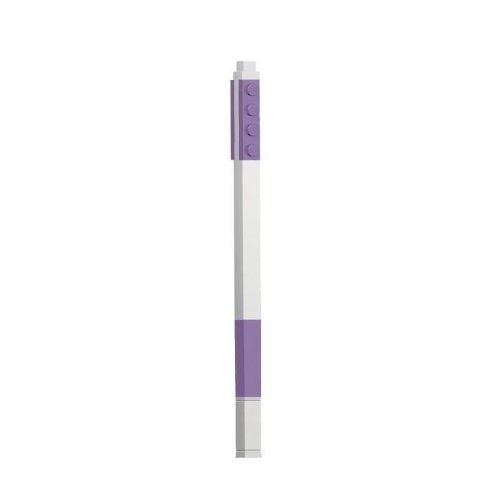 LEGO gelové pero. Součástí pera jsou 2 proužky LEGO destičky pro spojení např. s LEGO pouzdrem, minifigurkou, jiným perem nebo k nacvaknutí na LEGO pravítko.