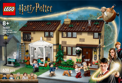 Znovu prožijte návštěvu tety Marge v Zobí ulici 4 z filmu Harry Potter a vězeň z Azkabanu s touto sběratelskou stavebnicí LEGO® Harry Potter™ (76451). Sestavitelný dům se zimní zahradou je propracovanou replikou rodinného domu Dursleyových a lze ho otevřít pro snadný přístup do interiéru. V kuchyni s jídelnou najdete odnímatelný stůl, v zadní části domu tajné dveře do Harryho starého pokoje pod schody, na okně Harryho pokoje v horním patře najdete odnímatelné mříže, se kterými si můžete připomenout scénu Harryho útěku, a nechybí spousta dalších autentických doplňků, které inspirují ke kreativnímu hraní. Tato fantastická dobrodružná stavebnice představuje kouzelný vánoční nebo narozeninový dárek pro kluky, holky a fanoušky od 8 let a obsahuje 5 minifigurek LEGO Harry Potter a figurku psa Raťafáka. Nechybí ani figurka nafouknuté tety Marge z vtipné scény, ve které na ni Harry sešle kouzlo, po kterém se nafoukne jako balón. Součástí je také menší model s nápisem „Privet Drive“ („Zobí ulice“) a pouličním osvětlením.