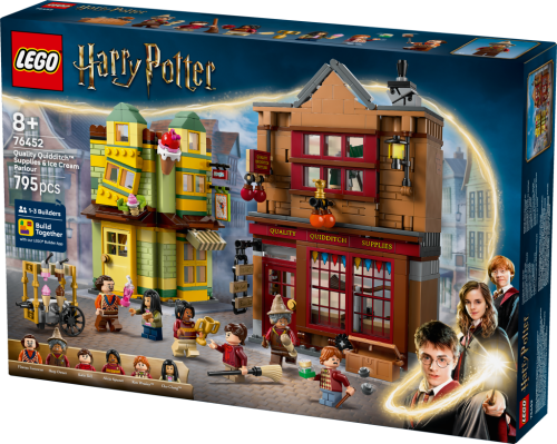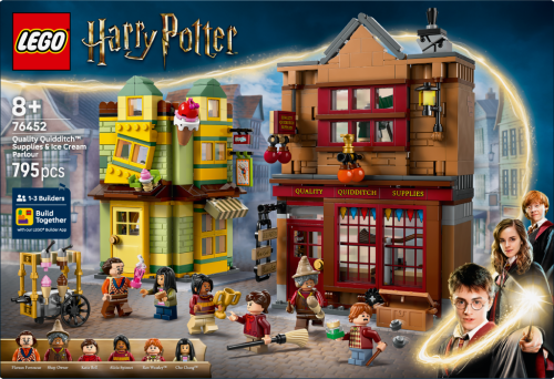 Vydejte se do obchodu Prvotřídní potřeby pro famfrpál a zmrzlinářství Floreana Fortescuea s touto stavebnicí z řady LEGO® Harry Potter™ (76452). Tento kouzelný model Příčné ulice představuje krásný dárek k narozeninám nebo Vánocům pro kluky, holky a fanoušky Harryho Pottera od 8 let. Obsahuje propracované modely 2 slavných obchodů v Příčné ulici z kostek LEGO a 6 minifigurek. V obchodě Prvotřídní potřeby pro famfrpál najdete létající koště a spoustu vybavení pro hraní famfrpálu, které inspiruje ke kreativnímu hraní. Zmrzlinářství lze otevřít pro snadné hraní a nabízí posezení uvnitř i venku a retro zmrzlinový stánek na ulici. Prvotřídní potřeby pro famfrpál a zmrzlinářství lze propojit mezi sebou nebo k dalším modelům z řady LEGO Harry Potter Příčná ulice (prodávají se samostatně) a vytvořit tak okouzlující nákupní ulici z kostek. • Stavějte společně s přáteli a rodinou – Aplikace LEGO® Builder nabízí zábavný společný stavitelský zážitek