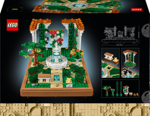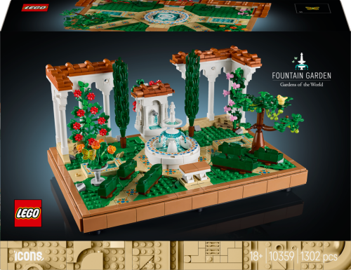 Vychutnejte si stavění propracované stavebnice LEGO® Icons (10359) Zahrada s fontánou pro dospělé, která se skvěle hodí domů i do kanceláře. Odpočiňte si při skládání složitých detailů a uspořádejte stromy, květiny, pergoly i všechny 4 rohy zahrady, abyste dosáhli dokonalého vzhledu. Tento přírůstek do kolekce Zahrady světa byl inspirován krásou a rozmanitostí krajinářské architektury. Součástí je stupňovitá fontána, zdobené lavabo, dekorativní dlážděné chodníky a pergoly s bílými sloupy a červenou střešní krytinou. V zahradě najdete kvetoucí vinnou révu, 2 cypřiše, červený kakost, bílé petúnie, červený ibišek, růžové bugenviley a afrikány a figurku ptáka, žáby a můry. Užijte si chvíle odpočinku s širokou řadou stavebnic LEGO pro dospělé(prodávají se samostatně). Aplikace LEGO Builder obsahuje 3D digitální verzi návodu na stavění, který je součástí této sběratelské stavebnice zahrady z kostek LEGO.