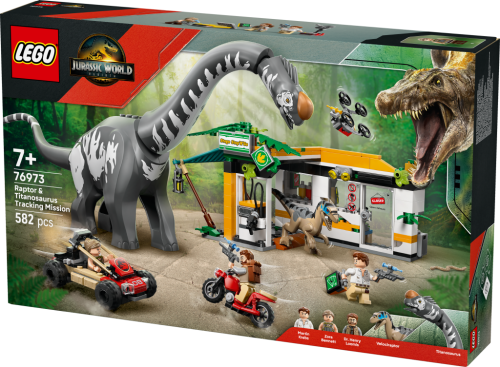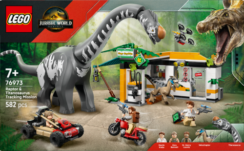 Milovníci filmů od 7 let se se stavebnicí LEGO® Jurassic World (76973) Mise na sledování raptora a titanosaura můžou těšit na napínavé akční honičky. Dárek s dinosaury pro kluky a holky obsahuje tvarované figurky titanosaura a velociraptora a 3 minifigurky: Zoru Bennettovou, Martina Krebse a Dr. Henryho Loomise. Velociraptor má pohyblivou čelist a titanosaurus má pohyblivý krk, hlavu a ocas. Tato interaktivní stavebnice obsahuje nabíjecí stanici, terénní vozidlo s přívěsem, pouzdro na injekční stříkačky se 3 injekcemi, motorku, sestavitelný dron, tábořiště s funkcí padajícího stromu a spoustu dalšího. Děti, které milují dobrodružství a dinosauří hračky, si tuto stavebnici můžou vzít s sebou na hraní na cestách. Stavebnici lze kombinovat s dalšími sadami LEGO Jurassic World (prodávají se samostatně). Aplikace LEGO Builder provede malé fanoušky intuitivním stavitelským dobrodružstvím, které jim umožní přibližovat a otáčet modely ve 3D, ukládat stavebnice a sledovat postup stavění. Stavebnice obsahuje 582 dílků.