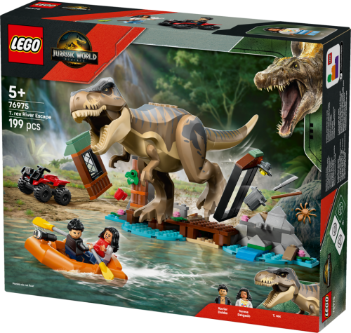 Děti a filmoví fanoušci od 5 let si připomenou napínavou scénu z filmu Jurassic World: Rebirth nebo si vymyslí vlastní dinosauří příběhy s propracovanou stavebnicí LEGO® Jurassic World (76975) T-rex a útěk po řece. Tato snadno sestavitelná stavebnice poslouží jako krásný dárek k narozeninám a obsahuje tvarovanou figurku T-rexe pro děti s pohyblivými pažemi, nohama, ocasem, hlavou a čelistí, a k tomu navíc 2 minifigurky: Teresu Delgadovou a Xaviera Dobbse. Nechybí kůlna, kterou lze „zničit“, vystřelovač lodi, loďka, čtyřkolka a spousta dalšího.