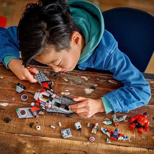 Malí milovníci stíhaček, Kapitána Amerika, Falcona a Red Hulka si s touto superhrdinskou stavebnicí užijí nekonečnou porci kreativního hraní Děti si mohou stáhnout aplikaci LEGO® Builder a vychutnat si pohlcující stavitelský zážitek s digitálními funkcemi přibližování a otáčení modelů ve 3D a možností ukládání stavebnic a zobrazení postupu ve stavění Rozsáhlá řada stavebnic a figurek LEGO® Marvel přináší neomezené možnosti tvůrčího hraní a stavění Stavebnice se skládá z 223 dílků a model stíhačky měří přes 4 cm na výšku, 19 cm na délku a 18 cm na šířku