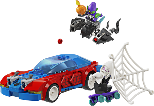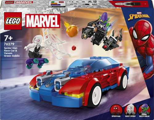 • Spider-Manovo auto pro děti – Spider-Manovo závodní auto a Venom Zelený goblin z kostek LEGO® představuje sestavitelnou akční superhrdinskou hračku na kolech i ve vzduchu pro děti od 7 let • Stavitelský a herní akční zážitek – Součástí stavebnice pro děti je sestavitelné auto, zbraně, doplňky a minifigurky hrdinů LEGO® Marvel Spider-Mana a Ghost-Spider a padoucha Venoma Zeleného goblina • Superhrdinské akční bitvy na kolech z kostek LEGO® – Spider-Manovo auto má 2 přední vystřelovače, Zelený goblin se pyšní 2 vystřelovači na kluzáku a Ghost-Spider při jízdě na skateboardu používá 2 ruční vystřelovače pavučin • Stavebnice stvořené pro hraní rolí – Součástí sady je řada prvků podněcujících hraní, jako je otevírací kokpit auta, dýňová bomba, ohebné pavučinové „lano“ a velká ohebná pavučina, kterou lze omotat kolem minifigurek • Tip na dárek pro děti – Fanoušci hrdinů od Marvelu, Spider-Mana, Ghost-Spider a Zeleného goblina si s touto stavebnicí užijí nekonečnou porci kreativního hraní • 3D průvodce stavěním – Děti si mohou stáhnout aplikaci LEGO® Builder a vychutnat si pohlcující stavitelský zážitek s digitálními funkcemi přibližování a otáčení modelů ve 3D a možností ukládání stavebnic a zobrazení postupu ve stavění • Sady LEGO® Marvel – Rozsáhlá řada stavebnic LEGO® Marvel přináší neomezené možnosti tvůrčího hraní a stavění • 227 dílků – Sestavitelné Spider-Manovo auto měří přes 4 cm na výšku, 14 cm na délku a 7 cm na šířku