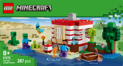 Dopřejte hráčům a fanouškům Minecraftu výbušnou odměnu s touto zábavnou kreativní hračkou. Stavebnice TNT dům v džungli (21275) představuje skvělý videoherní dárek pro děti od 8 let, které milují dobrodružné hračky, dekorace s motivem videoher, akční hraní a dobrodružství ve světě Minecraft®. Sestavitelný dům se nachází v biomu džungle v Minecraftu a vypadá jako velká verze ikonického TNT ve hře. Spínač na boku umožňuje dětem aktivovat funkci výbuchu TNT, která vyhodí do povětří celý dům. Až se usadí prach, děti můžou dům znovu postavit, aby se připravily na další dobrodružství. Minifigurky Stevea, Creepera a zombie inspirují ke kreativnímu hraní a akčním bitvám. Mezi autentickými doplňky LEGO Minecraft najdete loď, rybářský prut, rybu, papouška a listí z džungle. Aplikace LEGO® Builder dětem přináší ještě větší porci zábavy díky funkci přibližování a otáčení modelů ve 3D. Stavebnice obsahuje 287 dílků.