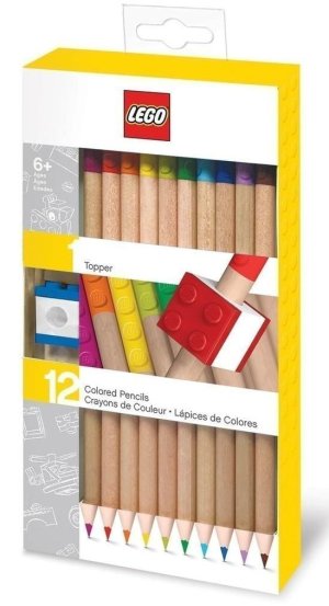 LEGO barevné pastelky, mix různých barev. Balení obsahuje 12 ks dřevěných pastelek a dva barevné klipy ve tvaru LEGO destičky pro uchycení pastelky např. do LEGO pouzdra nebo na přicvaknutí oblíbené minifigurky jako doplňku.