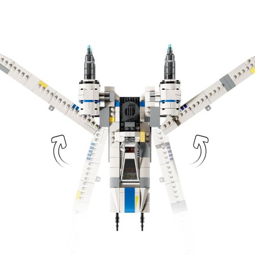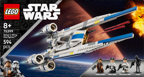 Připomeňte si hrdinská dobrodružství z 2. řady seriálu Star Wars: Andor s modelem Povstalecké stíhačky U-wing z kostek LEGO® Minifigurky LEGO Cassian Andor a Dedra Meero s blasterovými pistolemi, minifigurka LEGO taktického agenta ISB s blasterem a figurka LEGO droida K-2SO s blasterem Tato stíhačka LEGO® Star Wars má funkci výsuvných křídel, díky které lze křídla přepnout z přistávacího režimu do letového režimu ve tvaru „V" U-wing má kokpit se stříškou ovládanou páčkou, otevírací prostor pro cestující a náklad a 2 pružinové vystřelovače
