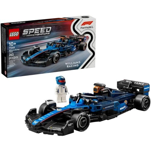 Tato prémiová stavebnice závodního auta F1 z kostek LEGO® nabízí zábavný stavitelský a herní zážitek a potěší děti od 10 let, fanoušky Formule 1 i dospělé sběratele modelů vozidel Se stavebnicemi LEGO® Speed Champions siděti a milovníci aut postaví repliky slavných vozů z kostek Stavebnice se skládá z 263 dílků a model závodního auta Williams Racing F1 měří přes 4 cm na výšku, 20 cm na délku a 8 cm na šířku