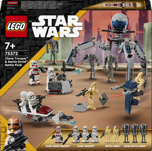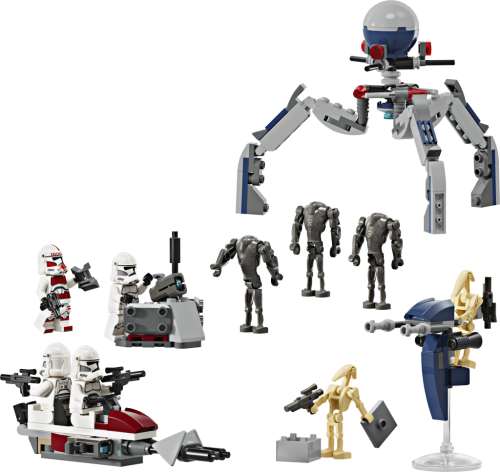 • Bitevní balíček klonovaného vojáka a bitevního droida pro děti – Připomeňte si scény ze seriálu Star Wars: Klonové války a přetvořte je do podoby z kostek LEGO® s figurkami LEGO, spídrovou motorkou a spoustou dalšího• 4 minifigurky LEGO® Star Wars™ a 5 figurek LEGO pro akční hraní – Klonový šokový voják, 3 klonovaní vojáci, 3 super bitevní droidi a 2 bitevní droidi s nejrůznějšími doplňky• Sestavitelný model spídrové motorky LEGO® Star Wars™ – Spídrová motorka má 2 vystřelovače, 2 držáky na blastery a místo pro 2 klonované vojáky• Neomezené kreativní hraní – Tri-droid s otočnou horní částí a 3 vystřelovači, STAP spídr pro bitevního droida, obranné stanoviště s vystřelovačem, prvek termálního detonátoru a spousta dalšího• Tip na dárek pro fanoušky Star Wars™ od 7 let – Darujte tuto sběratelskou stavebnici dětem, které zbožňují seriál Star Wars: Klonové války• Zábavné stavebnice LEGO® Star Wars™ pro všechny věkové kategorie – Stavebnice LEGO Star Wars se hodí pro děti i dospělé fanoušky, kteří si chtějí přehrávat kultovní scény, vymýšlet nové akční příběhy nebo vystavovat modely• Kompaktní stavebnice z 215 dílků – Po sestavení tri-droid měří přes 12 cm na výšku, 15 cm na délku a 13 cm na šířku