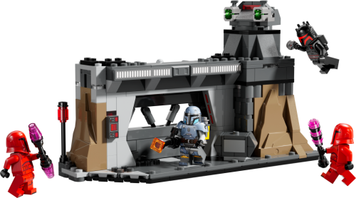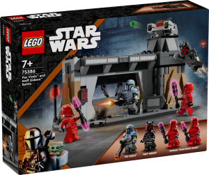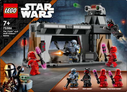 Postavte si se stavebnicí LEGO® Star Wars™ (75386) Souboj Paze Vizsly a Moffa Gideona pro kluky, holky a fanoušky od 7 let napínavé scény z 3. řady seriálu Star Wars: The Mandalorian. Tato stavebnice z kostek LEGO představuje parádní fantasy dárek pro děti a součástí je mandaloriánská základna s obrněnými dveřmi se spouští, která se aktivuje při zabouchnutí, ovládací panely a otočnou vystřelovací věž. Nechybí ani 4 sběratelské minifigurky LEGO Star Wars: The Mandalorian, se kterými si můžete přehrávat souboj Paze Vizsly a Moffa Gideoa (v brnění Dark troopera) a imperiální pretoriánskou stráží, a navíc doplňky, jako je jetpack Moffa Gideona a úložný box s termálním detonátorem pro kreativní hraní. Dopřeje dětem ještě zábavnější stavitelské dobrodružství s aplikací LEGO Builder. V ní si lze přibližovat a otáčet digitální verze modelů ve 3D, ukládat stavebnice a sledovat postup. Mandaloriánskou základnu lze propojit se skálou/jeskyní ze stavebnice Bitevní balíček Mandalore (75373), (prodává se samostatně) pro ještě více herních možností.