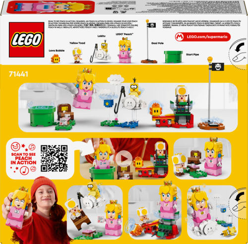 4 figurky LEGO® Super Mario™ – Tento set LEGO Nintendo® obsahuje interaktivní figurku LEGO® Peach™ a navíc Lakita, Žlutého Toada a Lava Bubble