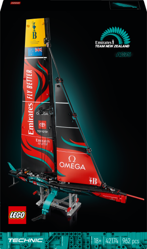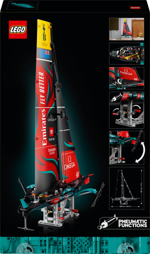 Stavebnice LEGO® Technic Jachta Emirates Team New Zealand AC75 pro dospělé Mezi doplňky pro plachetnici najdete plachty, otočný stěžeň, takeláž a foily Pomocí pneumatické funkce zvednete ramena foilů Postavte plachetnici na výstavní stojan a obdivujte model ze všech úhlů