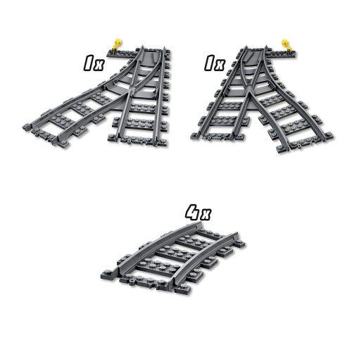Postav se sadou LEGO® City 7895 Výhybky nákladní vlak, aby byla přeprava nákladu nebo cestujících ještě zábavnější. Tato sada tvořená 4 zahnutými kolejemi, pravou výhybkou a levou výhybkou je kompatibilní s tvými stávajícími stavebnicemi s vlaky.