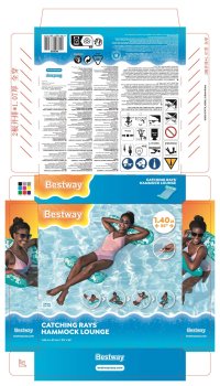 Lehátko je navíc vybaveno ochrannou vrstvou Color Shield™, která zabraňuje přenosu barevného potisku na mokrou pokožku a zároveň udržuje jasné a výrazné barvy i po delším používání. Součástí balení je také opravná záplata pro případ drobných poškození, což prodlužuje životnost výrobku. Rozměry lehátka jsou 140 × 87 cm, což poskytuje dostatek prostoru pro pohodlný relax v bazénu nebo jiné vodní ploše. Celkově jde o praktické a multifunkční lehátko, které kombinuje komfort, praktickou funkčnost a atraktivní design vhodný pro letní vodní radovánky.
